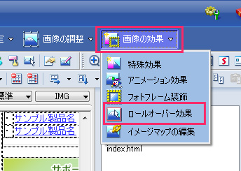 3.「画像の効果」→「ロールオーバー効果」をクリックします。