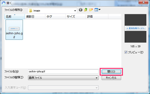 6.1で作成した画像を選択し、「開く」をクリックします。