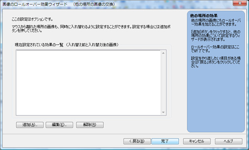 9.設定した画像が入れ替わるときに、他の場所の画像を同時に入れ替える事が出来ます。今回は必要ありませんので「完了」をクリックしてください。