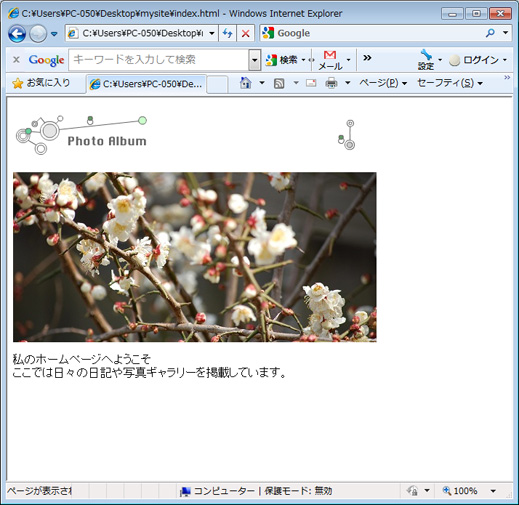 7.index.htmlを上書き保存し、Internet Explorerでバナーが挿入されたことを確認します。
